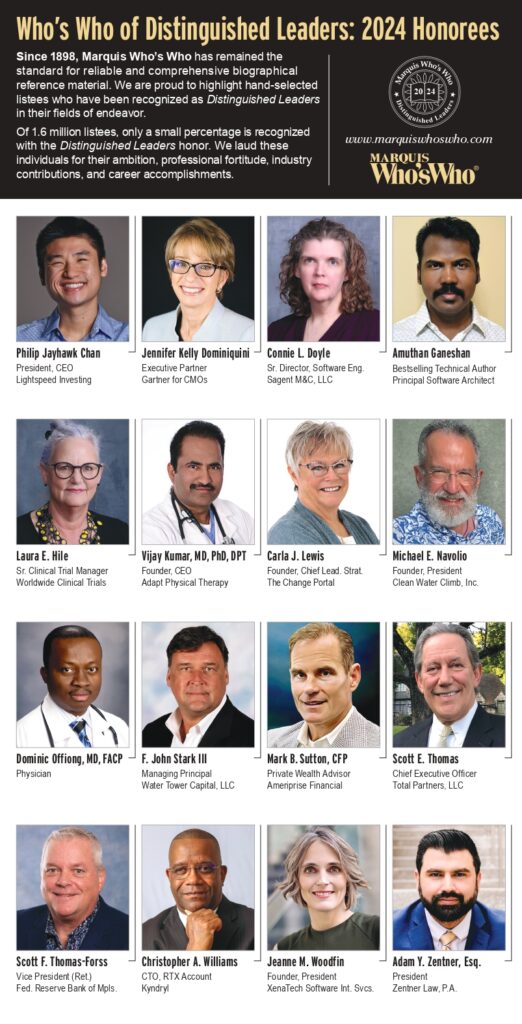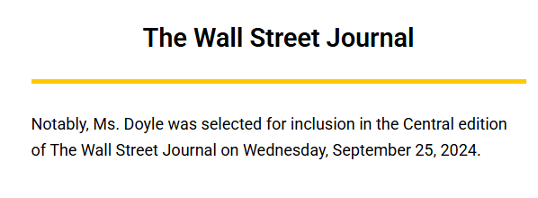 As a testament to her success and dedication to her work, Ms. Doyle has accrued such accolades as the President’s Award from Information Alternatives in 1997 and a Breakfast with Jay recognition from a senior colleague at Sagent in 2017. Recently, Marquis Who’s Who Honors in 2024 and Wall Street Journal print edition of Who’s Who of Distinguished Leaders in September of 2024.